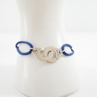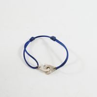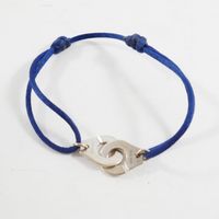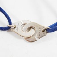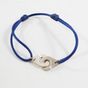 Bracelet composé d'un cordon de soie bleu et d'un fermoir menotte en or gris 750 mil, DINH VAN (Larg : 15 x 17 mm). 7 g brut.