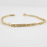 Bracelet en or 750 mil composé de maillons rectangulaires articulés centrés de 6 diamants (environ 1,80 ct au total) (Larg : 3 mm ; Long : 18 cm environ). 6,1 g brut.