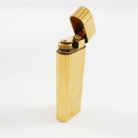 Briquet CARTIER en métal doré rainuré (petits chocs et usures).