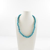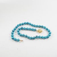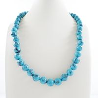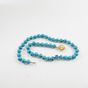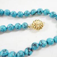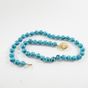 Collier de perles décoratives bleues veinées (Diam : 10,1 mm environ), fermoir en or 750 godronné (Long : 50 cm environ). 46,8 g brut.