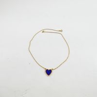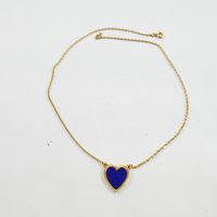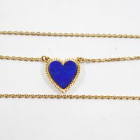 Collier maillons forçat limé en or 750 mil (Larg : 1 mm ; Long : 36 cm environ) centré d'un cœur rehaussé d'un plaque de lapis lazuli (Dim cœur : 1,6 x 1,5 cm environ). 6 g brut.