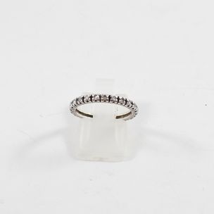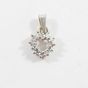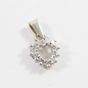 Pendentif cœur ajouré en or gris 750 mil bordé de diamants 8/8 (Dim hors bélière : 8,5 x 8,5 mm). 0,9 g brut.