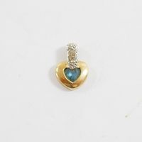 Pendentif cœur en or 750 mil centré d'une topaze, bélière rehaussée de de 2 diamants 8/8 (Dim hors bélière : 8 x 9 mm environ). 1,3 g brut.