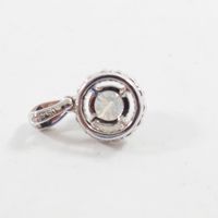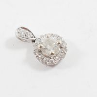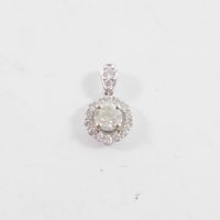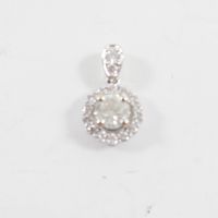 Pendentif rond (Diam : 9 mm) en or gris 750 mil orné de diamants dont 1 central d'environ 0,40 ct. 1,3 g brut.