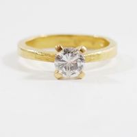 Solitaire en or 750 mil martelé orné d'un diamant accidenté (environ 0,60 ct) gravé CERVINI (TDD : 56). 4,6 g brut.