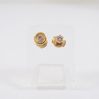 2 clous d'oreilles : en or 750 mil. ornés chacun d'un diamant taille brillant : 1 x 0,20 ct environ en serti griffe, et 1 x 0,30 ct environ en sertis clos, avec système Alpa. 1,8 g. brut.