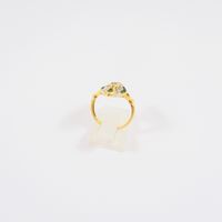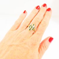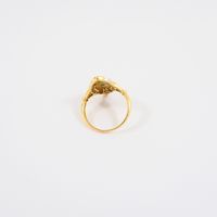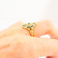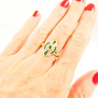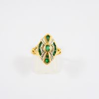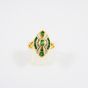 Bague marquise : 2 ors 750 mil. sertie d'émeraudes et de diamants taille 8/8 (TDD : 54 ; dimensions du chaton : 1,8 x 1,2 cm environ) (salissures). 3,8 g. brut.