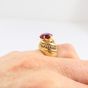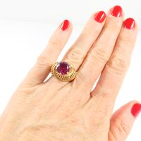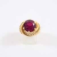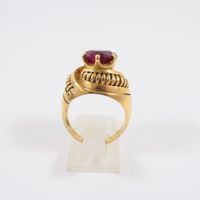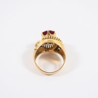 Bague volutes ajourées : en or 750 mil. (pierre imitation) (TDD : 53) (égrisures). 9 g. brut.