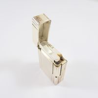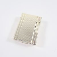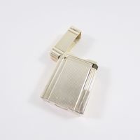 DUPONT : Briquet en métal argenté godronné, signé et numéroté (dimensions : 4,7 x 3,4 x 1,4 cm environ) (oxydation, et chocs).