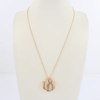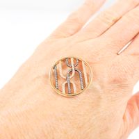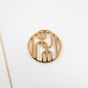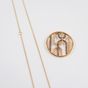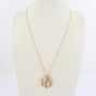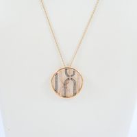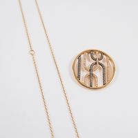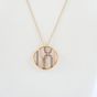 Pendentif circulaire : en or rose 750 mil. à décor géométrique serti de diamants taille 8/8 (diamètre : 2,6 cm) 5,3 g. brut ; INDYGO : Collier en or rose 750 mil. à maillons forçat rond (longueur réglable : 45 et 60 cm). Signé. Poids brut total : 7,6 g.