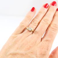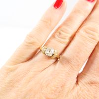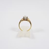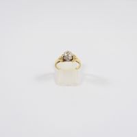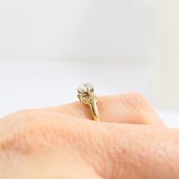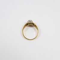 Solitaire : en or 750 mil. et platine 850 mil. orné d'un diamant taille ancienne de 0,50 ct environ epaulé de petits diamants taille brillant (TDD : 52,5). 3,1 g. brut.