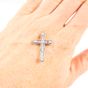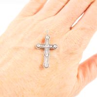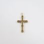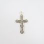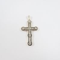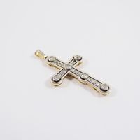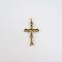 Travail début du Xxème siècle : Croix en or 750 mil. et platine 850 mil. sertie de petits diamants taille ancienne et de roses (dimensions : 3,1 x 1,7 cm) (pierre manquante, accident). 2 g. brut.