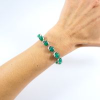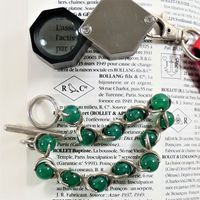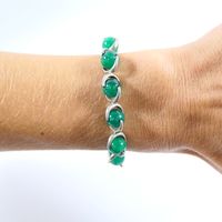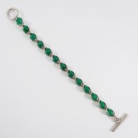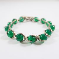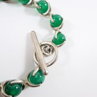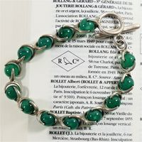 HERMES. Bracelet vintage : en argent 800 mil. orné de perles de calcédoine verte. Poinçon de maître ROLLANG Fils &Cie. Fermoir anneau bâtonnet. Long. 20cm. Poids brut : 31,6g