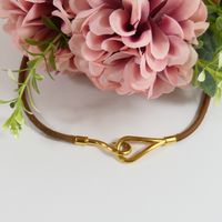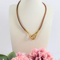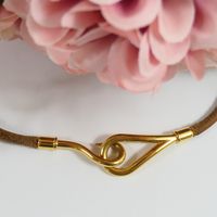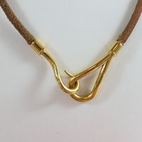 HERMES. Collier "Jumbo" : en cuir barénia fermoir hameçon en métal doré. Signé. Longueur : 40cm environ. Usures.