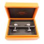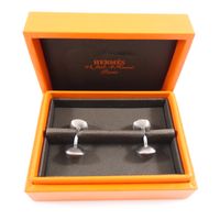 HERMES. Paire de boutons de manchettes : à décor de clous stylisés en argent 925 mil. Poinçon de maître Gaétan de Percin. 18,3g. Boite.