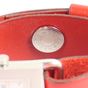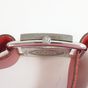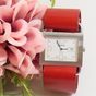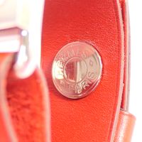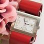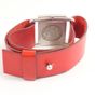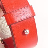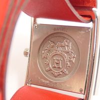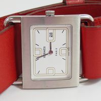 HERMES Paris. Montre-bracelet "Barenia" Ref. BA1-510 : Boitier rectangulaire en acier avec anses étriers (25 (40 avec anses) x31mm environ). Cadran blanc, guichet dateur à 3h. Signée et numérotée. Mouvement à quartz 956412. Bracelet en cuir rouge Hermès réglable 5 positions, largeur 24 mm avec attache Hermès dit Clou de selle. Bon état, quelques rayures d'usage, et petites salissures. Sans écrin, ni papiers.