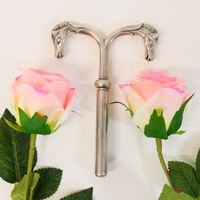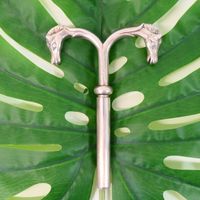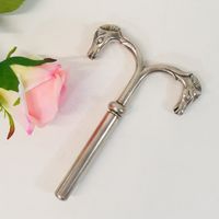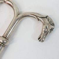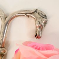 HERMES Paris par RAVINET d'ENFERT : Elégant tire-bouchon en métal argenté, formant 2 têtes de cheval incurvées, étui dévissable révélant le tire-bouchon. Signé Hermès, poinçon Ravinet d'Enfert. 10.5 x 14.5 cm.
