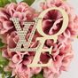 LOUIS VUITTON. Broche "That's Love" : en métal argenté, résine aspect ivoire et strass. Les lettres "LOVE" sont astucieusement positionnées pour mettre en avant le logo LV strassé. Taille XL. Ht.8,2x Larg.8,2cm. Bon état.