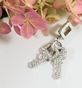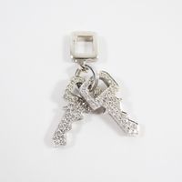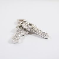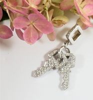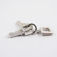 LOUIS VUITTON. Pendentif "Lockit key" diamanté : en or gris 750 mil. formé de 2 clés du fameux cadenas Vuitton pavé de diamants brillantés des 2 côtés. Numéroté, poinçon et gravure Louis Vuitton sur le côté des clés. 6,1g brut. Hauteur totale avec bélière diamantée : 3,8cm environ. Deux clés entièrement pavées de diamants qui rappellent les clés des emblématiques bagages Louis Vuitton,