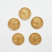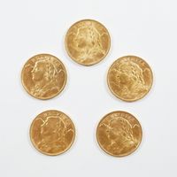 5 Pièces de monnaie de 20 FR suisses en or 900 mil