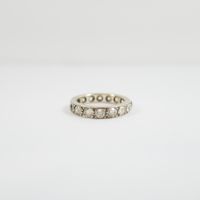 Alliance américaine en or gris 750 mil. entièrement pavée de 16 diamants taille ancienne de 0,10 carat chacun environ. (TDD : 55). (Usures, égrisures). 4,3 g. brut