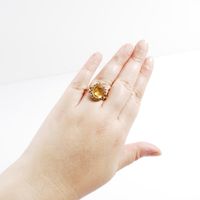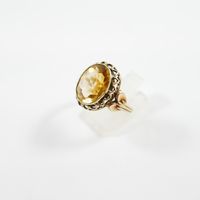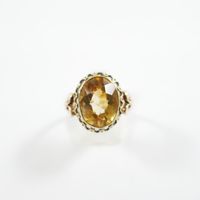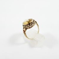 Bague en métal doré (333 mil.) à chaton ovale ornée d'une citrine taille ovale. (TDD : 56). 3,4 g. brut