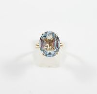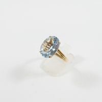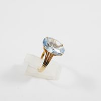 Bague en or 750 mil. ornée d'un spinelle synthétique bleu taille ovale. Travail français. (TDD : 56). 5,1 g. brut