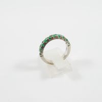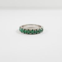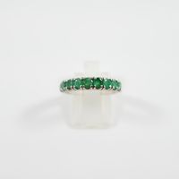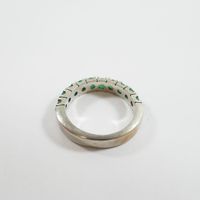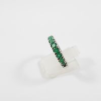 Bague rivière en or gris 585 mil. sertie d'une ligne d'émeraudes brillantées. (TDD : 53). (Egrisures). 4,3 g. brut
