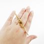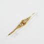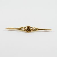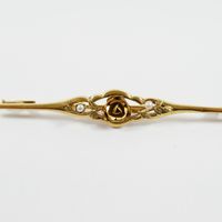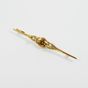 Broche barrette en or 750 mil. à décor ajouré centré d'une rose, épaulée de semences de perles. (Longueur : 8 cm environ). 3,2 g. brut