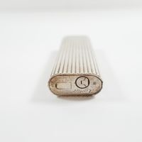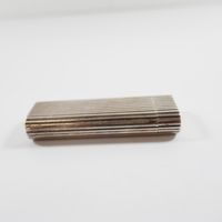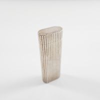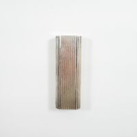 CARTIER : Briquet en métal argenté rainuré. Signé et numéroté. (Dim. : 7 x 2,5 cm environ) (Usures d'usage).
