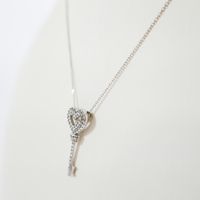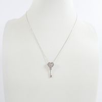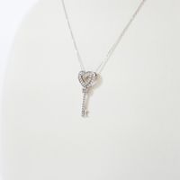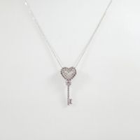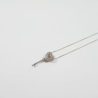 Collier et Pendentif en or gris 375 mil., le collier à fine maille forçat retenant un motif clef-cœur ajouré pavé de diamants 8/8. (Longueur collier réglable : 39 ou 42 cm ; Haut. pend. : 2 cm environ). 1,5 g. brut