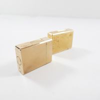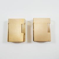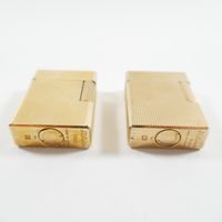 S.T.DUPONT : Lot de deux briquets en métal doré guilloché. Signés et numérotés. (Dim. 4,6 x 3,4 cm environ) (chocs, usures d'usage, salissures) (non chiffrés).