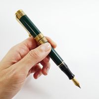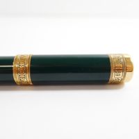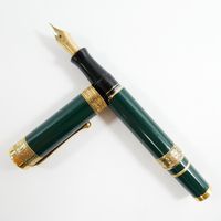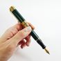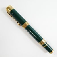 AURORA "Dante Alighieri", Stylo-plume : en laque verte et métal doré, trois bagues en vermeil 925 mil. gravées de lauriers, plume en or 750 mil., système de remplissage à piston, signé et numéroté N°0969, Edition limitée à 1919 exemplaires (longueur : 13,5 cm environ). 40,5 g. brut [Exempté : art. 524 bis du CGI al. c]