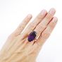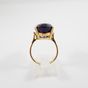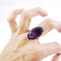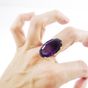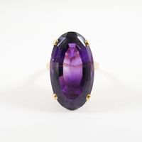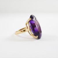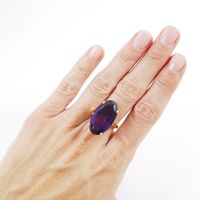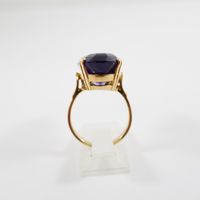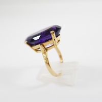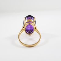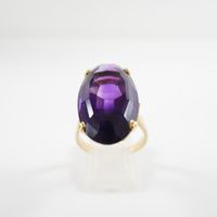 Bague : en or 750 mil. ornée d'une améthyste ovale de 20 carats environ (TDD : 59,5) (petit fêle à la monture). 10,5 g. brut
