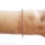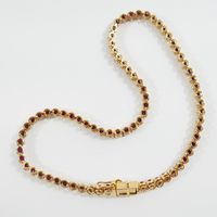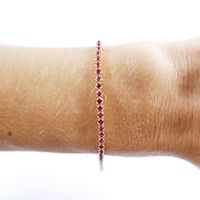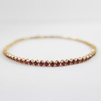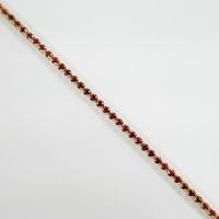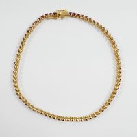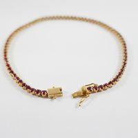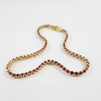 Bracelet ligne : en or 750 mil. serti de pierres imitation rouges (longueur : 21,5 cm environ) (largeur 2,6 mm environ) (petits éclats). 7,3 g. brut