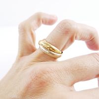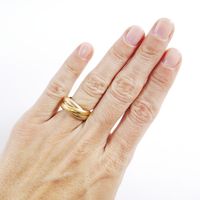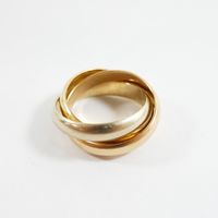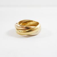 CARTIER "Trinity", Bague : en trois ors 750 mil., signée et numérotée (TDD : 53) (largeur anneau : 3,7 mm environ) (traces de mises à taille - inscrit 50). 11 g. brut