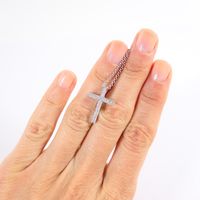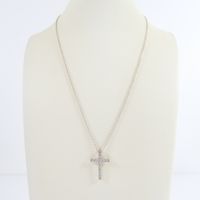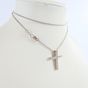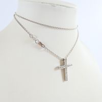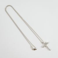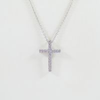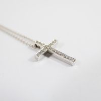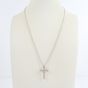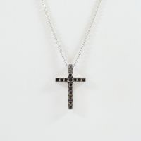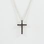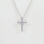 Chaîne et pendentif croix : en or gris 750 mil., chaîne à maille forçat et croix non amovible serti de diamants taille brillant (longueur : 46 cm environ) (dimensions croix : 22 x 15 mm environ) (petits éclats). 5 g. brut