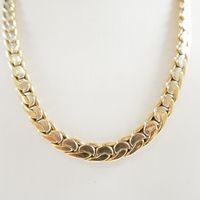 Collier : en deux tons d'or 750 mil. poli et amati à maille fantaisie plate en chute (longueur : 45 cm environ) (largeurs : 5,9 x 8 mm environ). 24,2 g.