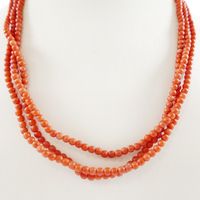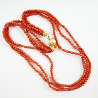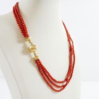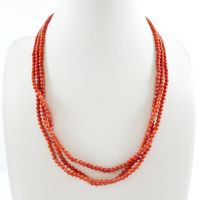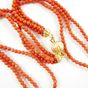 Collier de 3 rangs de perles de corail : fermoir godronné en or 750 mil., travail italien (longueur : 42,5 cm environ) (diamètre perle : 3 mm environ). 20,2 g. brut