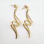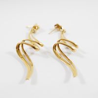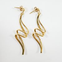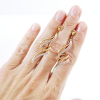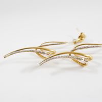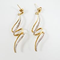 MATY, Paire de pendants d'oreilles : en deux ors 750 mil. à décor mouvementé, sertis chacun de deux diamants taille 8/8 (hauteur : 5,3 mm environ) (largeur : 16 mm environ). 4,8 g. brut