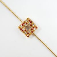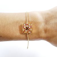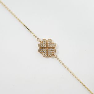 MAUBOUSSIN "Amours Divines", Bracelet : en deux tons d'or 750 mil. composé d'une chaîne à maille serpent et d'un motif carré pavé de saphirs de couleurs et de diamants taille brillant ajouré d'un trèfle quadrilobé, signé et numéroté (longueurs : de 15 à 17 cm environ) (dimensions motif : 14,8 x 14,8 mm environ). 8,1 g. brut [Exempté : art. 524 bis du CGI al. c]