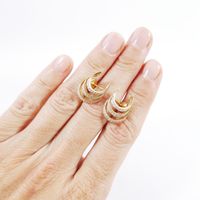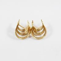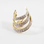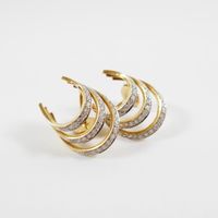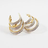 Paire de boucles d'oreille : en deux ors 750 mil. formant trois petites créoles qui épousent le lobe, entièrement serties de diamants taille brillant (systèmes ALPA) (dimensions : 19,2 x 14,6 mm environ). 4,6 g. brut