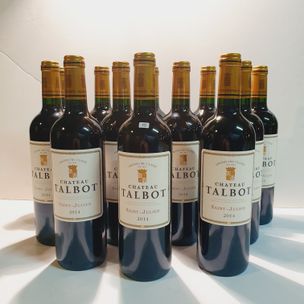480 / 540 €12 bouteilles Château TALBOT, 4° cru Saint Julien2014 caisse bois d'origine