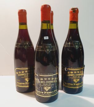 200 / 240 €4 bouteilles CHARMES-CHAMBERTIN, Camus 2010 (étiquette abîmée, 2 capsule cire abîmées)
