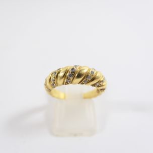 300 / 350 €Bague : en or jaune 750 mil. à décor de godrons torsadés alterné de lignes de petits diamants taille 8/8. (TDD: 52). Poids brut : 5,3g. (Manques pierres).