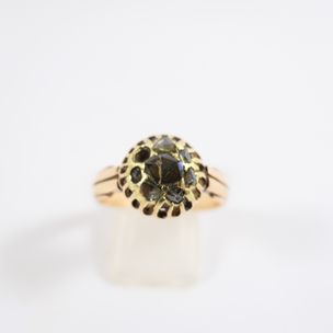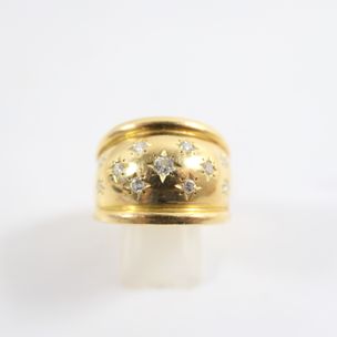 750 / 800 €Bague dôme : en or jaune 750 mil orné de diamants taille brillant serti étoilé. (TDD : 62). Poids brut : 14g.