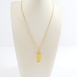 140 / 180 €Pascal MORABITO, d'après : pendentif en or jaune 750 mil. et plexiglas renfermant un cœur brillanté. (Dimensions : 2,7 x 1,3cm environ). Petits éclats et petites rayures. Chaîne à maille torsadée en or jaune 750 mil. (Longueur : 45 cm environ). Poids brut total : 4,6g.