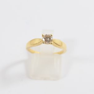 180 / 200 €Bague solitaire : en or jaune 750 mil. centrée d'un diamant taille brillant (0,20 carats environ). (TDD : 51,5). Poids brut : 3,5g