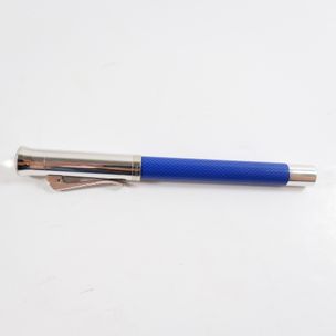 50 / 80 €GRAF VON FABER-CASTELL : Stylo-plume en acier et résine bleue à motif de vagues, plume en or gris 750 mil. exemptée [ Art. 524 bis du CGI al. C]). Poids brut : 28,4g