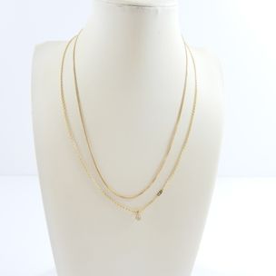 260 / 280 €Lot de deux colliers : en or jaune 750 mil. à maille forçat retenant un petit diamant (0,10 carats environ) en pendentif, et maille gourmette. (Longueur : 40 cm - 43cm). Poids brut : 4,7g